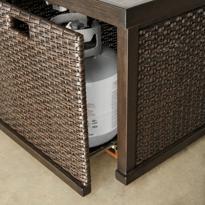 Propane tank stainless steel burner lava rocks included pvc cover included warranty this product is covered by the sam's club member satisfaction guarantee. The abundance of decorative detail with the fireplace lends romantic intrique to the outdoor fireplace experience. $999.00 includes durable stainless steel burner with crushed fire glass and push button ignition; Sam's club help center search to return a product purchased on samsclub.com, you can take it to your club, ship it back, or contact us with your order number. An outdoor fire pit is a desirable outdoor option for those who enjoy being outside during all seasons.